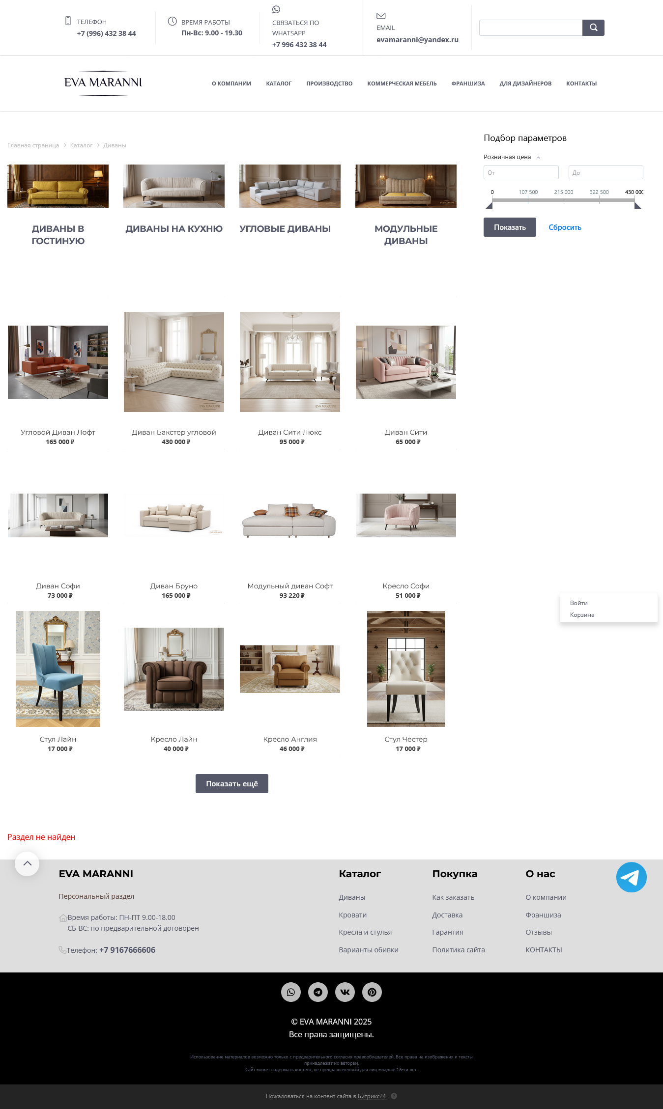 - Внутри коллекций должны отображаться диваны только этой коллекции.